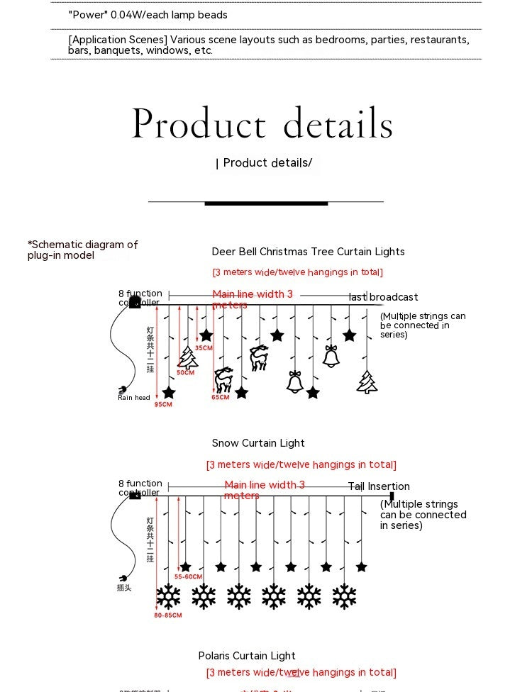 Weihnachts-Kombinations-Vorhanglampe, Zimmer-/Schlafzimmerbeleuchtungskette